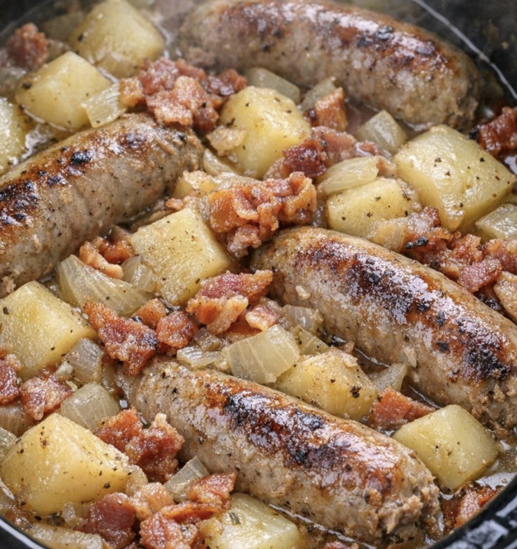 This Slow Cooker 5-Ingredient Irish Coddle is the kind of meal that warms you from the inside out. Smoky bacon, hearty sausages, tender potatoes, sweet onions, and a savory broth — all simmered slowly together until every bite is perfect.