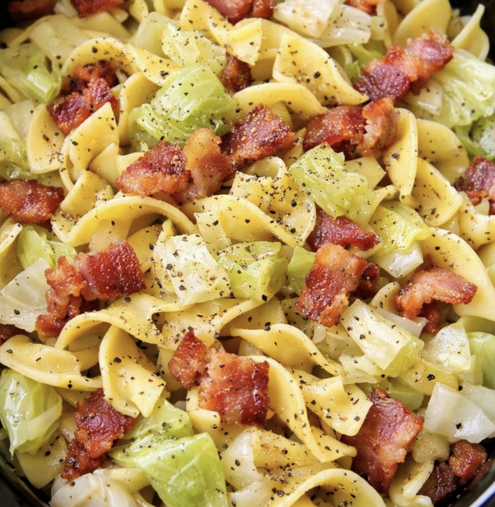 In Amish country — particularly in Lancaster County, Pennsylvania — cabbage and noodles is a beloved comfort food. Cabbage was a staple vegetable because it could be stored for months in a root cellar. Noodles were made from flour and eggs — inexpensive ingredients that stretched a meal to feed a large family. Bacon or ham added smoky, salty flavor without needing much meat.