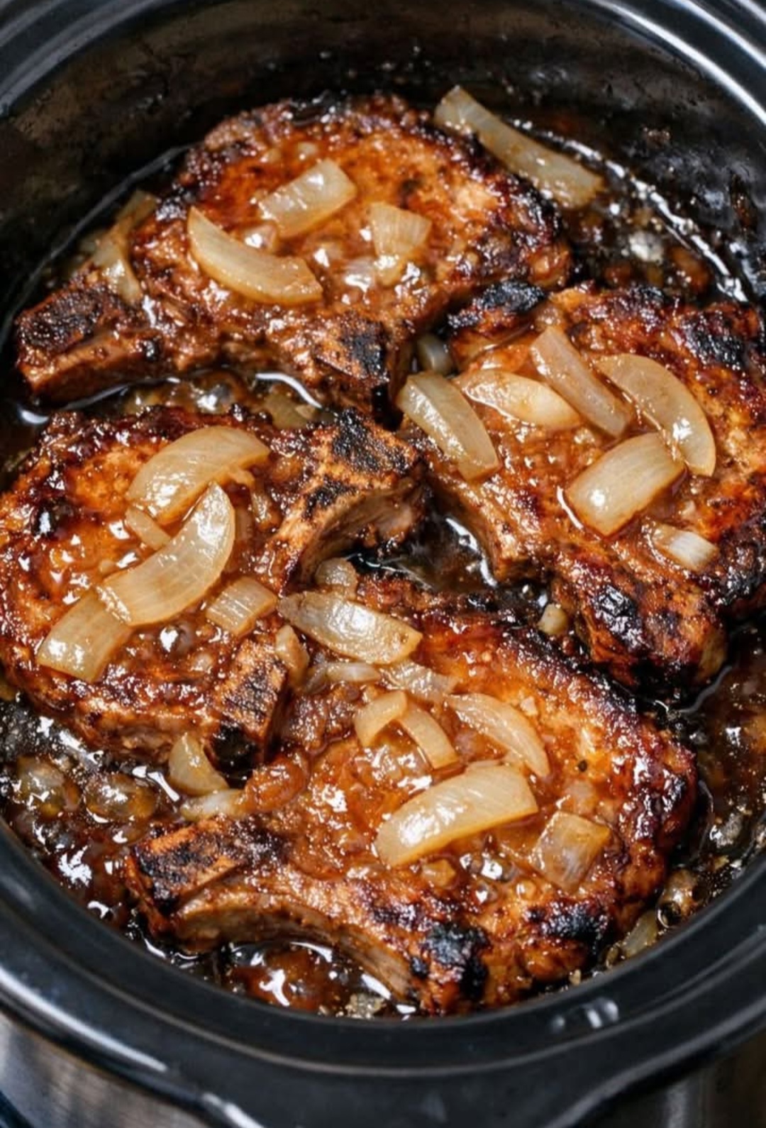 What makes this dish so irresistible is the magic combination of brown sugar and apple cider vinegar. As the pork chops cook low and slow, the sauce transforms into a bold sweet-and-tangy glaze, while the onions melt down into soft ribbons of flavor. The pork becomes so tender it practically falls apart when you lift it—exactly the kind of “set it and forget it” meal that feels like a secret passed down through generations.