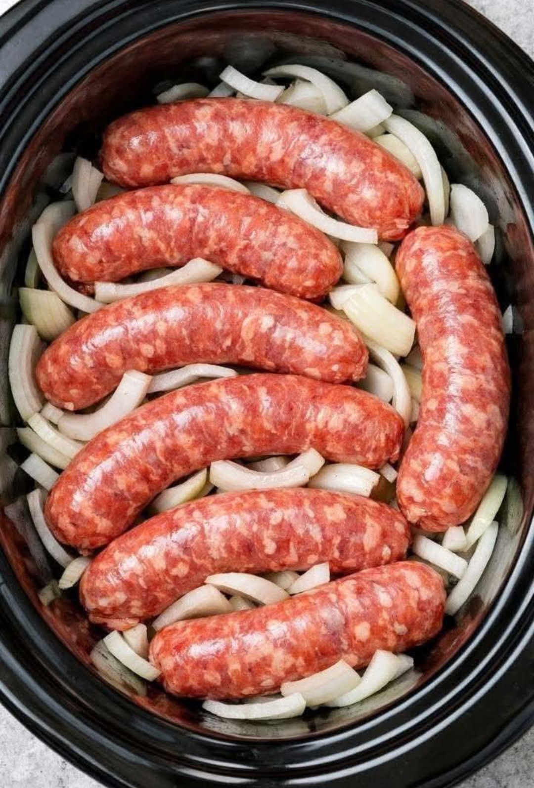 Place the raw sausage links directly into the slow cooker. Arrange them in an even layer if possible.
