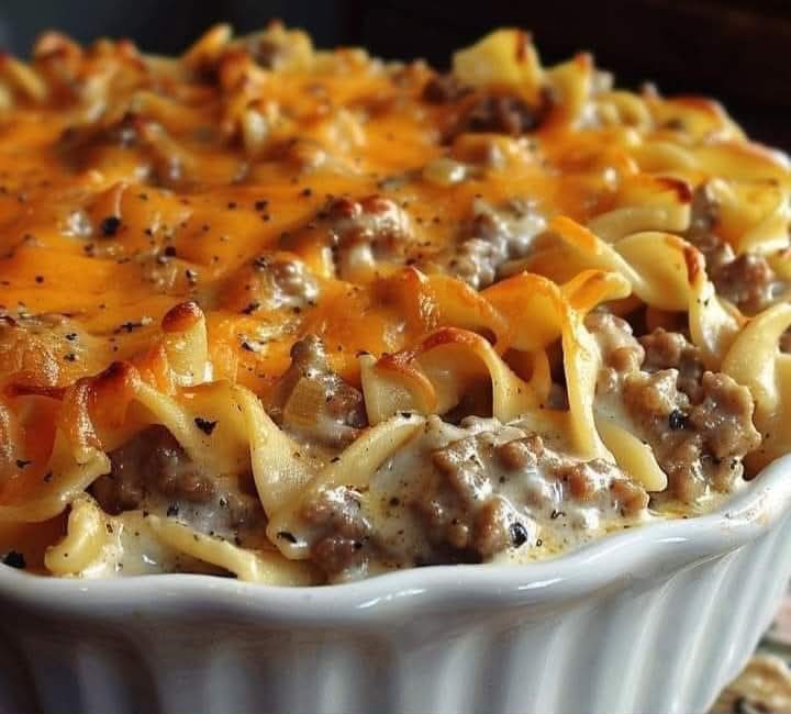 Place half of the noodles into the bottom of the prepared baking dish.