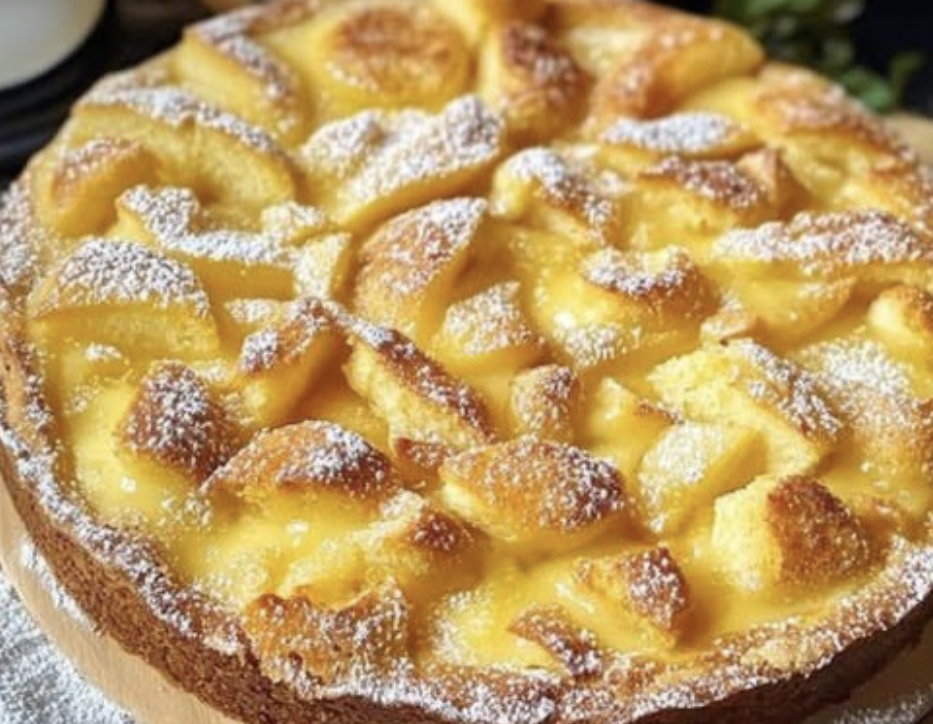 The method is brilliantly simple. You sauté apple slices in butter and cinnamon right in the pan. You pour a simple, pourable batter directly over the fruit. You cover the pan with a lid and let the steam do the rest. Ten minutes later, you flip the whole thing onto a plate, and the apples — now golden, soft, and glistening — become the beautiful topping.