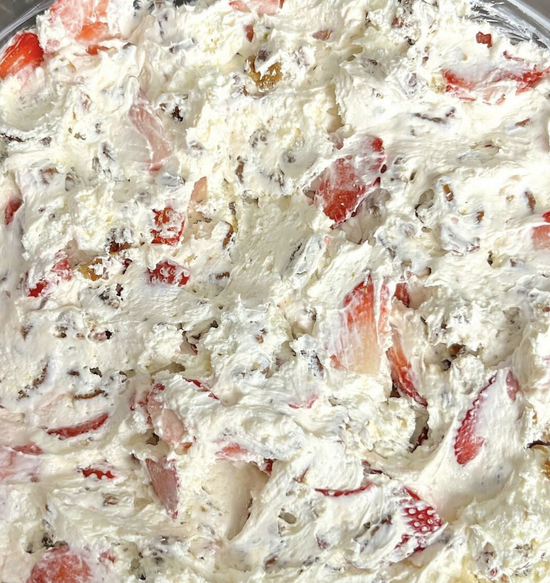 This crowd-pleasing recipe starts with a buttery, caramelized pretzel and pecan crust that brings the crackle. Then comes the fluffy cream cheese and Cool Whip filling, layered with fresh, juicy strawberries. The result? A dish that’s light, luscious, and just the right amount of indulgent. It’s part salad, part dessert, and totally irresistible.