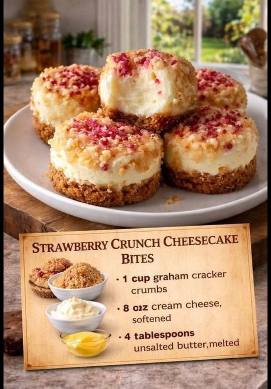 Strawberry Crunch Cheesecake Bites