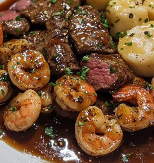 Succulent Garlic Butter Steak Bites with Juicy Shrimp