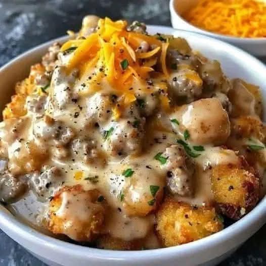 Tater Tot Breakfast Bowl with Sausage Gravy