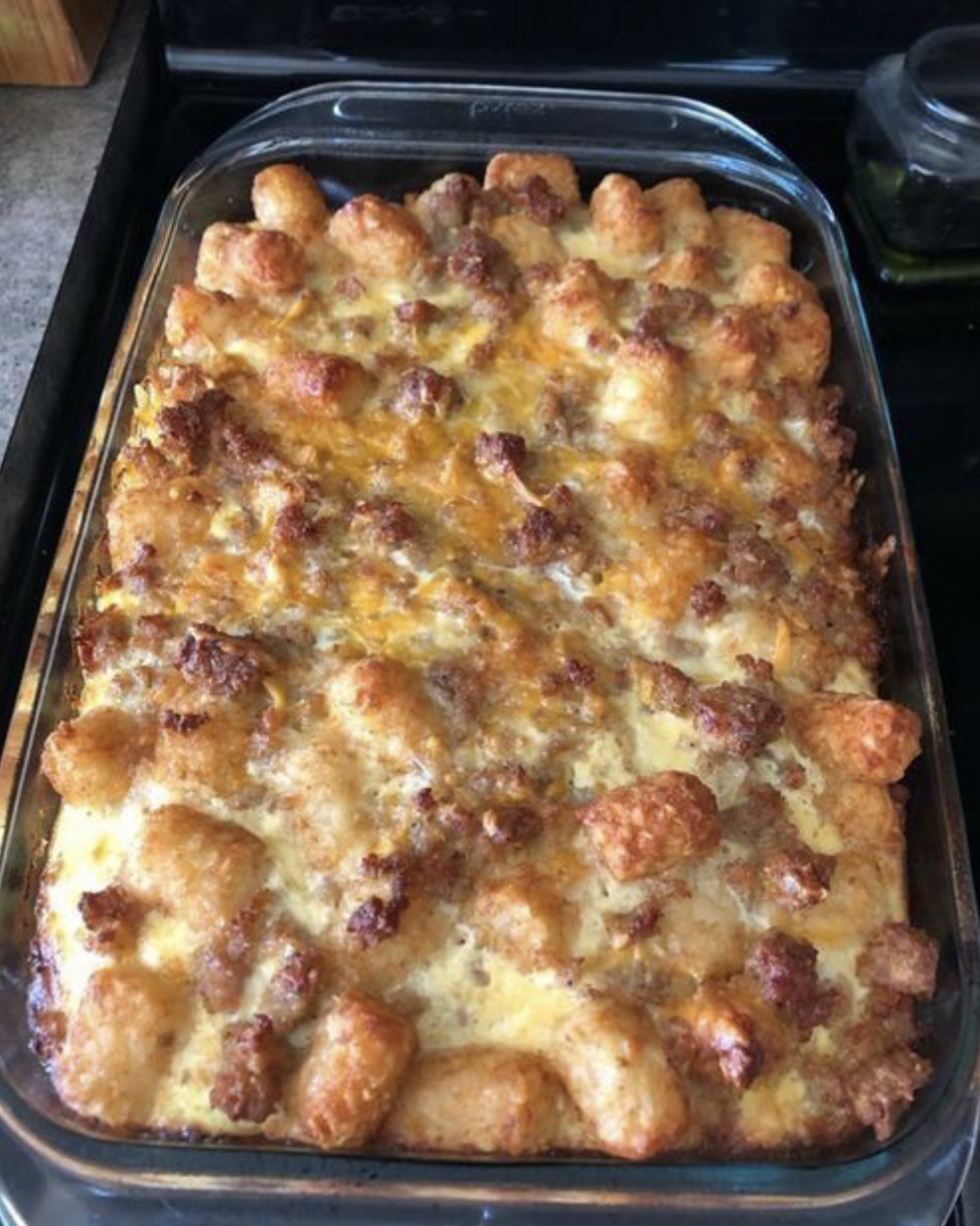 A casserole for any time of the day. Creamy ground beef and corn with crunchy tater tots on top that everyone in the family will love.