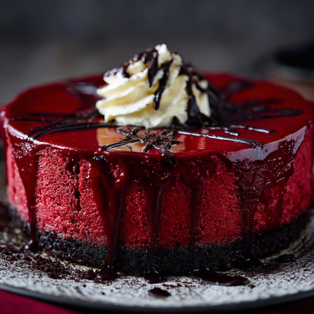 Vampire Bite Red Velvet Cheesecake – A Spooky, Decadent Dessert